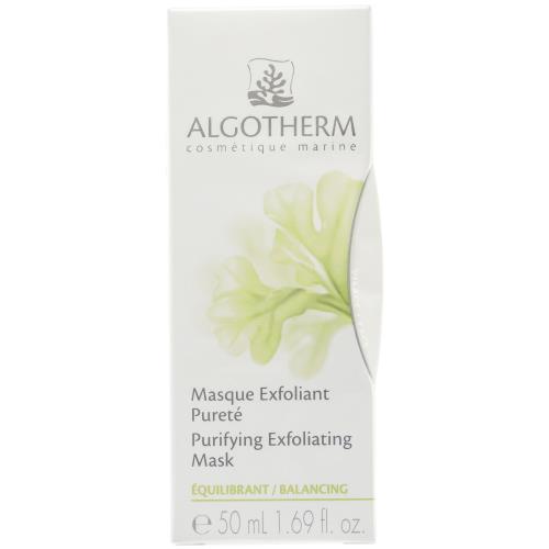 Algotherm Algo Mask Purifying Exfoliating Mask (Альготерм Algo Mask Маска-эксфолиант очищающая) для всех типов кожи. Идеально чистая, гладкая, мягкая и шелковистая кожа – результат применения Algotherm Algo Mask Purifying Exfoliating Mask. Продукт оказывает комплексное действие на эпидермис: деликатно отшелушивает отмершие клетки, очищает поры, устраняет чрезмерное себовыделение, улучшает текстуру и выравнивает цвет. Под влиянием водоросли Fucus Spiralis, входящей в состав комплекса ALGOPURE, нормализуется гидролипидный баланс, а кожа приобретает матовость. После использования средства надолго сохраняется ощущение чистоты и свежести. Очищающая маска-эксфолиант Альготерм AlgoMask прошла тестирование под дерматологическим контролем. Добровольцы отметили: 100% очищение, 100% смягчение, 100% улучшение текстуры, 100% гладкость кожи. Активные компоненты: комплекс ALGOPURE регулирует себовыделение; порошок абрикосовых косточек и АГК мягко отшелушивает ороговевший слой эпидермиса; белая и зеленая глина адсорбируют излишки кожного сала, очищают поры; цинк проявляет антибактериальный эффект. Без парабенов, без феноксиэтанола.