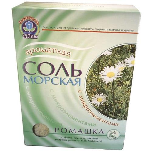 Морская соль Верхнекамского месторождения идеально подходит для проведения SPA - процедур в домашних условиях. При растворении соли в воде образуется естественный осадок – это целебная межкристаллическая глина, которая содержит в себе более 40 жизненно важных макро- и микроэлементов. Регулярный прием ванн с морской солью поддерживает процесс обновления клеток кожи, усиливает ее защитные функции, сохраняет молодость и здоровье. Уникально подобранная рецептура экстракта ромашки и комплекса эфирных масел розмарина и бергамота хорошо смягчает и омолаживает кожу, делая ее более эластичной и нежной.Показания к применению