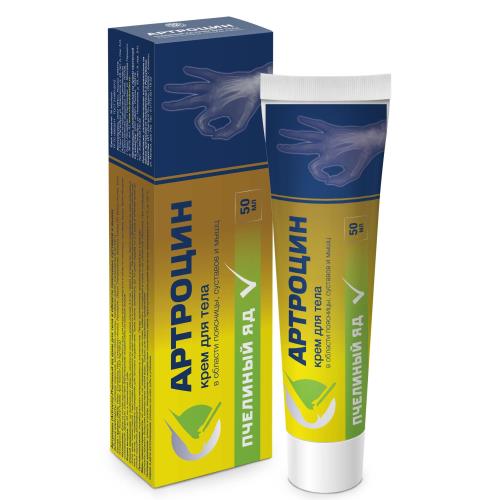 "Артроцин" ("Artrосin" ) Пчелиный яд крем для тела в области поясницы, суставов и мышц - комбинированный крем для наружного применения на основе пчелиного яда, скипидара живичного и масла семян горчицы.В 100 г крема содержится 3 мг яд пчелиного яда.