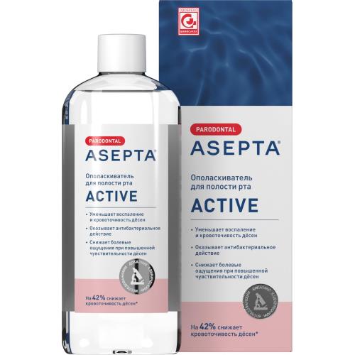 Ополаскиватель для полости рта АСЕПТА® — средство комбинированного действия, предназначенное для применения при инфекционно-воспалительных заболеваниях полости рта. Эффективность ополаскивателя АСЕПТА® обусловлена наличием в его составе следующих компонентов: Бензидамин — оказывает противовоспалительное и местное обезболивающие действие, что может сопровождаться чувством онемения. Хорошо абсорбируется через слизистые оболочки и проникает в воспаленные ткани. Снижает болевую чувствительность в очаге воспаления. Хлоргексидин — антисептик широкого спектра действия. Активен в отношении вегетативных форм грамотрицательных и грамположительных микроорганизмов, дрожжей, дерматофитов и липофильных вирусов.Действие