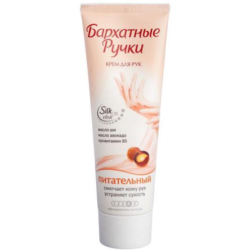 Питательный крем для рук Бархатные Ручки смягчает кожу рук, устраняет сухость и обладает насыщенной структурой.