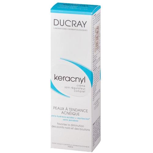 Регулирующий крем Ducray Keracnyl применяется при жирной проблемной, склонной к акне коже для устранения жирного блеска и раздражений. Оказывает матирующий и успокаивающий уход. Применение крема позволяет быстро и эффективно добиться уменьшения рогового слоя и удалить загрязнения, скапливающиеся в порах кожи. Может служить основой под макияж. Быстро и лекго впитывается.