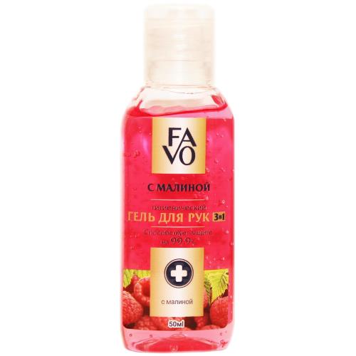 FAVO гигиенический гель для рук С МАЛИНОЙ - густой гель, красного цвета, без резкого запаха. Предназначен для очищения кожи без использования воды. НЕ СУШИТ КОЖУ. Описание и свойства: Способствует регенерации кожного покрова, стимулирует и освежает кожу, помогает справиться с возрастной сухостью и восстанавливает эластичность клеток.Действие