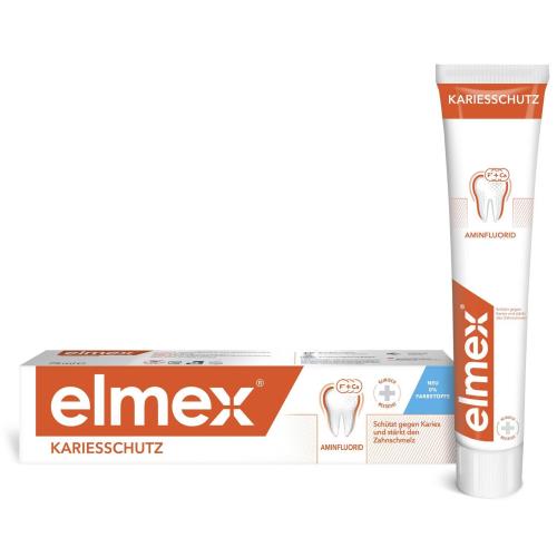 Зубная паста Colgate Элмекс ЗАЩИТА ОТ КАРИЕСА с высокоэффективным аминофторидом реминерализирует, укрепляет эмаль и защищает зубы от кариеса. Предназначена для ежедневной гигиены полости рта с целью обеспечения длительной защиты от кариеса, снижения растворимости и укрепления зубной эмали. Аминофторид, содержащийся в зубной пасте Colgate элмекс ЗАЩИТА ОТ КАРИЕСА, формирует устойчивый слой фторида кальция на поверхностях зубов, который обеспечивает длительную и высокоэффективную защиту от воздействия кислот.