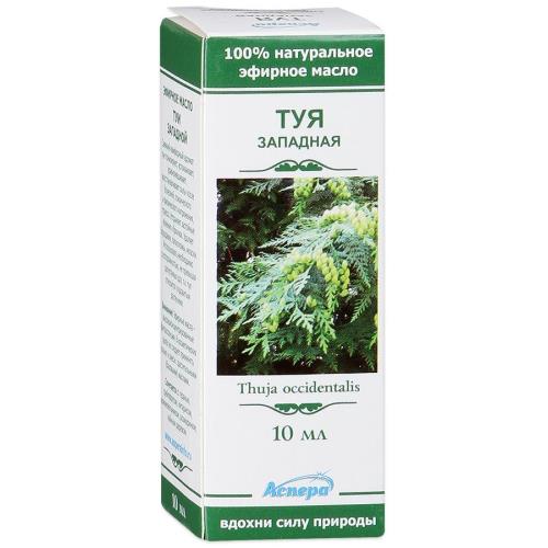 Туя западная красивое вечнозелёное дерево пирамидальной формы высотой до 20 метров с плоскими листьями и широко разведёнными стволами семейства кипарисовых (Cupressaceae). Произрастает на северо-востоке Северной Америки, культивируется во Франции. Масло производят в Канаде и США. В России североамериканские виды выращивают как декоративные растения. Эфирное масло содержит пинен, линалоол, борнеол, туйон (ядовитое вещество).Действие