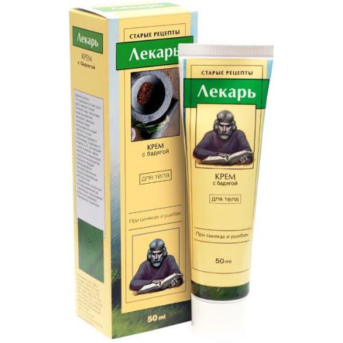 Бадяга – уникальное природное средство от синяков иушибов. Это пресноводные губки, которые используются в виде молотого порошка, содержащего иголочки кремнезема, вызывающие местное раздражение кожных покровов, что обеспечивает превосходный рассасывающий эффект на пораженных местах. Высокая биосовместимость активных компонентов крема создает приятное ощущение комфорта и гладкости кожи, снимает припухлость и дискомфорт, придает коже здоровый внешний вид.Действие