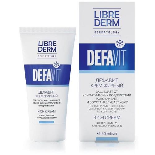 Крем жирный ДЕФАВИТ LIBREDERM - это универсальный cold крем для защиты чувствительной кожи зимой, содержащий необходимые для жизнеобеспечения и обновления кожи витамины: Д-пантенол, Е, F, A.