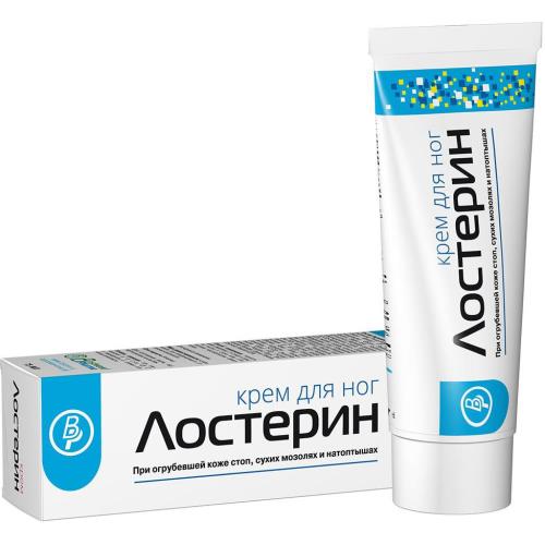 Крем для ног «Лостерин» специально предназначен для ежедневного ухода за сухой, огрубевшей кожей стоп, склонной к ороговению и образованию сухих мозолей, натоптышей. Содержит в своем составе сбалансированную комбинацию активного нафталана, мочевины, пантенола, триклозана, экстрактов лекарственных трав и витаминов. Укрепляет защитные механизмы кожи, помогает противостоять агрессивному воздействию внешней среды, восстанавливает естественный защитный барьер кожи. Назначение: крем для ног «Лостерин» – негормональный препарат, предназначенный для ежедневного ухода за кожей стоп. Показания к применению: – Огрубевшая, сухая кожа стоп – Сухие мозоли – Натоптыши – Нарушение кожного покрова стоп, трещины и длительно заживающие эрозии - Зуд, шелушение кожи стоп - Ладонно-подошвенный псориаз - Повышенное потоотделение и появление неприятного запаха – Грибковые поражения кожи стоп (наряду с базовой терапией) Комплексное терапевтическое действие крема «Лостерин» обусловлено входящими в его состав активными компонентами: Нафталан обессмоленный – это очищенный от смолистых соединений природный нафталан, который обладает выраженным антибактериальным и противовоспалительным действием, улучшает микроциркуляцию, повышает интенсивность обменных процессов и стимулирует трофические функции кожи. Мочевина (Карбамид/Carbamide/Urea) – эффективное, увлажняющее кожу средство. Легко проникает в глубокие слои эпидермиса и служит проводником для других активных компонентов препарата. Способствует ослаблению межклеточных соединений плотных слоев кожи. Обладает выраженным кератолитическим (отшелушивающим), антипролиферативным, ранозаживляющим и бактериостатическим действием. Д-пантенол (провитамин В5) стимулирует регенерацию кожи, слизистых оболочек, нормализует клеточный метаболизм, ускоряет митоз и увеличивает прочность коллагеновых волокон. Повышает репаративные и барьерные функции кожи, эффективно смягчает кожу, оказывает противовоспалительное действие. Экстракт софоры японской содержит комплекс алкалоидов и флавоноидов, в том числе рутин, обладающий сильным противовоспалительным действием, способностью уплотнять стенки сосудов и уменьшать их ломкость. Алкалоиды софоры способны подавлять пролиферацию кератиноцитов, снижая шелушение кожи. Препараты софоры широко применяют при гнойных воспалительных и грибковых заболеваниях кожи. Триклозан – является известным антибактериальным агентом широкого спектра действия, обладает противовоспалительными свойствами, действует на грамположительную и на грамотрицательную флору, а также на грибковые микроорганизмы. Витамин А (ретинол) способствует регенерации эпителия, регулирует обменные процессы в коже. Применение витамина А уменьшает воспалительные явления и нормализует смену слоёв эпидермиса. Местно препараты витамина А назначаются для активизации процессов заживления и регенерации тканей, для лечения ран, язв, ожогов, обморожений. Витамин Е (токоферол) является мощным антиоксидантом, обеспечивает нормальное питание клеток кожи. Способствует регенерации и увеличению выработки эластиновых и коллагеновых волокон, придает упругость, мягкость и эластичность коже, улучшает кровообращение, способствуя проникновению в клетки достаточного количества кислорода. Токоф