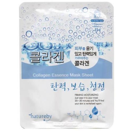 Тканевая маска Natureby Collagen Essence Mask Sheet с коллагеном обладает моментальным эффектом увлажнения, уже первое применение позволяет ощутить, как устраняется пересушенность и шелушения кожи, уходят напряжение и усталость. Лицо заметно свежеет, приобретает сияющий и здоровый вид, микрорельеф разглаживается, эпидермальная текстура становится бархатистой. Благодаря полезным ингредиентам маски дерма насыщается витаминами, устраняются следы усталости и стрессов, отеки. Действующие компоненты в составе: гидролизованный коллаген глубоко гидратирует кожу, активирует регенерацию тканей за счет стимуляции выработки собственного коллагена; гиалуроновая кислота восстанавливает рельеф, устраняет сухость и стянутость кожи; экстракт меда восстанавливает защитные функции кожи, смягчает и питает ее; муцин улитки освежает и восстанавливает уставшую кожу, выравнивает тон лица; экстракт зеленого чая способствует сужению пор и минимизирует окислительные реакции.Способ применения и дозы