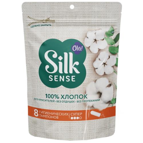 OLA! Silk Sense представляет новую линейку гигиенических тампонов. Тампоны выполнены из 100% органического хлопка без добавления ароматизаторов, красителей и других химических веществ. Шелковистое покрытие и тонкий кончик обеспечивают комфортное введение. Во время использования тампон принимает форму тела, равномерно раскрываясь благодаря желобкам, расположенным по кругу. Мягкая и надежная упаковка дой-пак позволяет открывать и закрывать пачку много раз, удобна в использовании и хранении. Каждый тампон в индивидуальной упаковке. Размер Super подойдет для обильных выделений, в упаковке 8 шт.