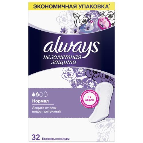 Ежедневные гигиенические прокладки Always Незаметная Защита созданы для тех моментов, когда вам необходима дополнительная защита. Их технология нейтрализации запаха дарит непревзойденную свежесть и обеспечивает чувство уверенности. Ежедневные гигиенические прокладки Always Незаметная Защита — отличное средство защиты при всех видах выделений. Тройная защита: мгновенно впитывают, сохраняют сухость, нейтрализуют неприятные запахи. Надежная защита, которую практически не чувствуешь. Мгновенно впитывают влагу. Незаметны под одеждой. С легким ароматом. Проверено дерматологами.