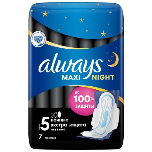 Бренд Always - является одним из мировых лидеров в производстве и продаже средств женской гигиены.Гигиенические прокладки толстые с крылышками Always Maxi Night Extra, размер 5.