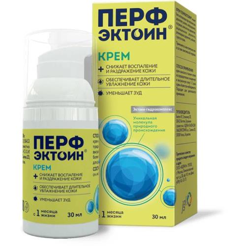Крем Перфэктоин® предназначен для интенсивного и длительного увлажнения кожи, а также для снижения таких симптомов, как зуд, покраснение, воспаление и шелушение кожи. Крем Перфэктоин® может быть использован в составе комплексной терапии при атопическом дерматите, экземе, нейродермите, псориазе, контактном дерматите, радиационном дерматите, ретиноидном дерматите, хейлите, сухости кожи. Может применяться при проактивной терапии атопического дерматита благодаря свойствам стабилизировать и защищать кожный барьер. Перфэктоин® рекомендован к применению у детей после 1 месяца жизни. В более ранний период жизни применение средства не рекомендовано, так как в этот период заканчивается формирование кожного покрова ребенка. Была показана безопасность и хорошая переносимость эктоина (активного вещества крема Перфэктоин®) как натурального компонента, кроме того, в креме не используются потенциально вредные составляющие, такие как консерванты, красители, поверхностно-активные вещества.Противопоказания