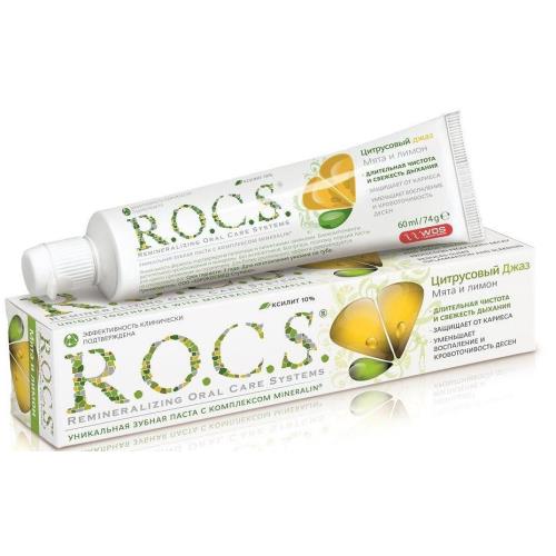 Зубная паста R.O.C.S Цитрусовый джаз предназначена для постоянного ежедневного использования взрослыми и детьми старше 4-х лет. Обеспечивает высокий уровень комплексной защиты зубов и десен за счет действия БИО компонентов растительного происхождения. Не содержит фтор, антисептики. Обладает низкой абразивностью.