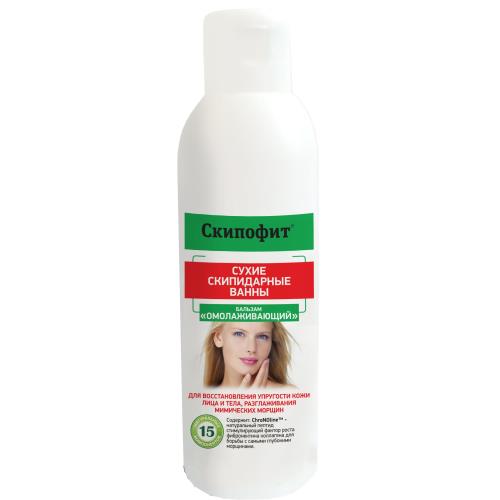 Бальзам «Омолаживающий» сухие скипидарные ванны Скипофит - комплексное косметическое средство с активным стимулирующим действием против дряблости кожи, разглаживания мимических морщин, повышения тургора и насыщения влагой. Способствует омоложению кожи, помогает подтянуть овал лица.