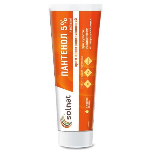 SOLNAT КРЕМ ВОССТАНАВЛИВАЮЩИЙ ПАНТЕНОЛ 5% - создан для ухода за кожей при нарушениях целостности кожного покрова в результате мелких повреждений, вызванных солнечным ожогом, обморожением, обветриванием, жесткой водой.Внешний вид и свойства: Однородная непрозрачная кремообразная масса без посторонних включений, белого цвета, без запаха
