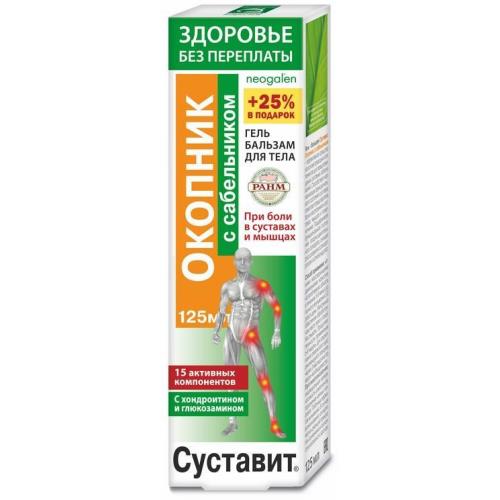 Действие и эффективность геля-бальзама “Суставит. Окопник с сабельником” обеспечены высокой биологической активностью его натуральных компонентов, обладающих выраженными регенерирующими, противовоспалительными, обезболивающими, противоотечными, спазмолитическими свойствами.