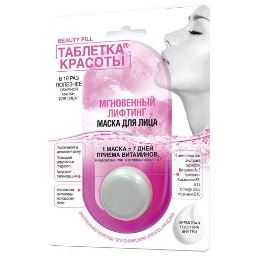 Маска для лица Мгновенный лифтинг серии Таблетка КрасотыДействие