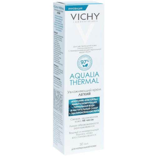 Бренд VICHY (Виши) - это крупнейшая французская косметическая компания, выпускающая широкий ассортимент лечебной косметики на основе термальной воды. Линия Aqualia Thermal - динамичное увлажнение для всех типов кожи, в том числе чувствительной, восстанавливает и поддерживает оптимальный водный баланс VICHY AQUALIA THERMAL КРЕМ УВЛАЖНЯЮЩИЙ ЛЕГКИЙ ДЛЯ НОРМАЛЬНОЙ КОЖИ - подходит для чувствительной кожи. Внешний вид и свойства: Кремовый цвет, Кремообразная текстура Новая формула с изотоник-коктейлем из минерализирующей термальной воды и растительного сахара Манноза, а также с гиалуроновой кислотой натурального происхождения в составе, помогает удерживать влагу глубоко внутри кожи и сокращать ее трансэпидермальную потерю. Возрастная категория с 20 лет Первая гамма*, содержащая увлажняющий «изотоник-коктейль» для восстановление водно-минерального баланса кожи. Для нормальной кожи УВЛАЖНЕНИЕ ДО 48 ЧАСОВ! КОЖА ВЫГЛЯДИТ СВЕЖЕЙ И УВЛАЖНЕННОЙ ЛИНИИ ОБЕЗВОЖЕННОСТИ РАЗГЛАЖИВАЮТСЯ ВОДНО-МИНЕРАЛЬНЫЙ БАЛАНС ВОССТАНАВЛИВАЕТСЯ 97% ингредиентов натурального происхождения 100% гипоаллергенная формула cреди продуктов VICHY **оставшиеся 3% гарантируют приятную текстуру и сохранение формулы Активные ингредиенты: МИНЕРАЛИЗИРУЮЩАЯ ТЕРМАЛЬНАЯ ВОДА VICHY Обогащена 15 минералами и микроэлементами. Она способствует восстановлению нормального pH кожи, регенерирует и защищает эпидермис, что повышает барьерные свойства кожи и способствует сохранению в ней влаги. РАСТИТЕЛЬНЫЙ САХАР МАННОЗА Сахар растительного происхождения, экстрагируемый из древесины березы, бука или клена. Способствует глубокому увлажнению кожи, а также помогает усиливает регенерацию и сцепление клеток. ГИАЛУРОНОВАЯ КИСЛОТА НАТУРАЛЬНОГО ПРОИСХОЖДЕНИЯ Природный компонент человеческой кожи и один из самых эффективных натуральных гидрофиксаторов. Действуя как губка, одна молекула гиалуроновой кислоты может удерживать молекул воды в 1000 раз больше собственного веса, формируя на поверхности кожи защитную пленку и делая кожу гладкой и увлажненной. Клинически доказанная эффективность, протестированная под контролем дерматологов. Специальные особенности: Без парабенов, силиконов, минеральных масел, полиэтиленгликоля, феноксиэтанола. Гиппоалергенно