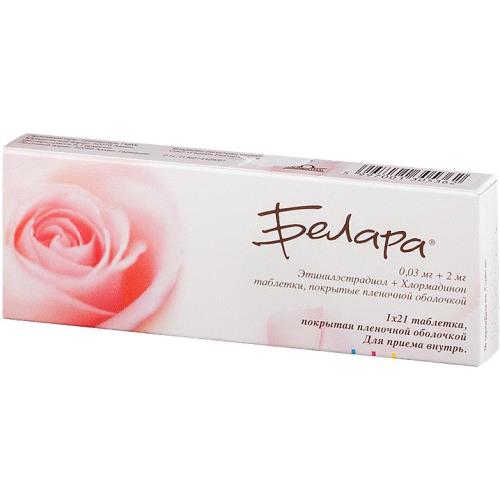 Входящий в состав препарата Белара хлормадинона ацетат - гестаген, обладающий антиандрогенными свойствами. Его действие основано на способности замещать андрогены на специфических рецепторах, исключая и ослабляя эффект эндогенных и экзогенных андрогенов. Индекс Перля равен 0,291 - 0,698, в зависимости от того, насколько тщательно женщина соблюдает режим прима препарата.