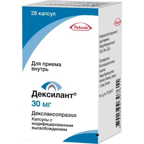 Декслансопразол является ингибитором протонного насоса, подавляя секрецию желудочного сока путем угнетения Н + /K + -АТФ-азы в париетальных клетках желудка. Блокирует заключительную стадию секреции соляной кислоты. Капсула препарата Дексилант® распадается в желудке и содержит два типа гранул, покрытых кишечнорастворимой оболочкой, которые высвобождают активное вещество в зависимости от pH в различных областях тонкого кишечника. Данная комбинация помогает пролонгировать действие декслансопразола и способствует снижению секреции желудочного сока в течение продолжительного времени.Фармакокинетика