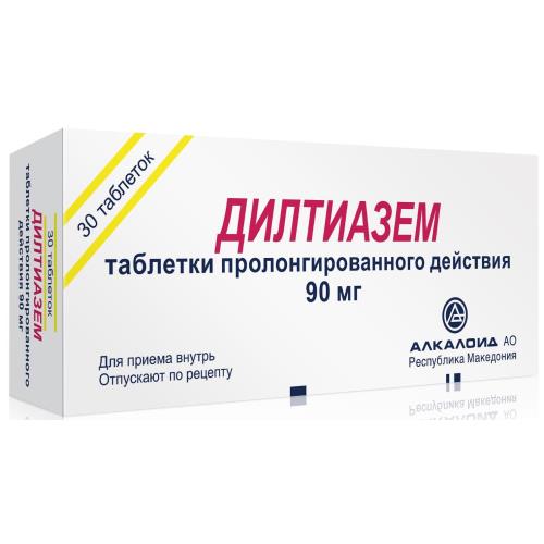Активное вещество: дилтиазема гидрохлорид 90,00 мг.