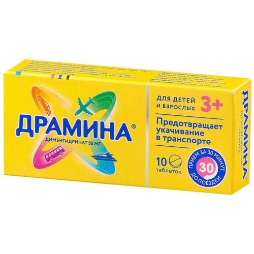 Для профилактики кинетозов следует принимать 1-2 таблетки за 30 минут до поездки.