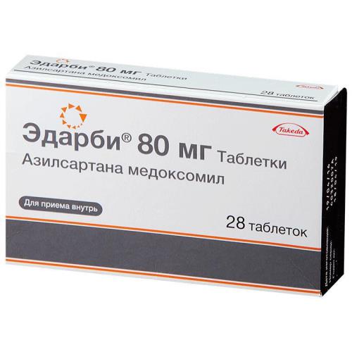 Азилсартана медоксомил – действующее вещество препарата Эдарби® – является специфическим антагонистом рецепторов ангиотензина II типа 1 (АТ1). Азилсартана медоксомил – это пролекарство для приема внутрь. Азилсартана медоксомил быстро превращается в активную молекулу азилсартана, которая избирательно препятствует развитию эффектов ангиотензина II путем блокирования его связывания с рецепторами АТ1 в различных тканях. Ангиотензин II является первичным вазоактивным гормоном ренин-ангиотензин-альдестероновой системы (РААС) с эффектами, включающими вазоконстрикцию, сердечную стимуляцию, стимуляцию синтеза и высвобождение альдостерона, и, как следствие, почечную реабсорбцию натрия. Блокада АТ1-рецепторов ингибирует отрицательный регулирующий ответ ангиотензина II на секрецию ренина, но итоговое повышение в плазме активности ренина и уровня циркулирующего ангиотензина II не подавляет антигипертензивный эффект азилсартана. Антигипертензивный эффект азилсартана медоксомила развивается в течение первых 2 недель применения с достижением максимального терапевтического эффекта через 4 недели. Снижение артериального давления (АД) после приема внутрь однократной дозы обычно достигается в течение нескольких часов и сохраняется в течение 24 часов. Синдром «отмены» (резкое повышение АД после отмены препарата) после внезапной отмены после длительной терапии (в течение 6 месяцев) препаратом Эдарби® не наблюдался. Безопасность и эффективность применения препарата не зависят от возраста пациентов, но бoльшая чувствительность к снижению АД у некоторых пожилых пациентов не может быть исключена. Как и при применении других антагонистов рецепторов ангиотензина II и ингибиторов ангиотензинпревращающего фермента (АПФ), антигипертензивный эффект менее выражен у пациентов негроидной расы (обычно популяция с низкой активностью ренина в плазме крови). У пациентов с диабетической нефропатией также не следует одновременно применять ингибиторы ангиотензинпревращающего фермента и антагонисты рецепторов ангиотензина II. Одновременное применение Эдарби® 40 мг и 80 мг с дигидропиридиновыми блокаторами «медленных» кальциевых каналов (амлодипин) или тиазидными диуретиками (хлорталидон) приводит к дополнительному снижению АД по сравнению с гипотензивными средствами, применяемых в монотерапии (см. раздел Взаимодействие с другими лекарственными средствами). Влияние на процессы реполяризации Оценка потенциала Эдарби® увеличивать интервал QT/QTc проводилась у здоровых добровольцев во время исследования QT/QTc. При применении дозы 320 мг Эдарби® увеличения интервала QT/QTc не отмечено. QTc – корригированная (относительно частоты сердечных сокращений (ЧСС)) величина интервала QT, относительная величина. Так как длительность интервала QT зависит от частоты сердечного ритма (удлиняясь при его замедлении), для оценки она должна быть скорригирована относительно ЧСС. Удлинение интервала QT отражает неоднородность процессов реполяризации миокарда желудочков, и расценивается как независимый показатель, указывающий на возможность появления фатальных нарушений ритма сердца.Фармакокинетика