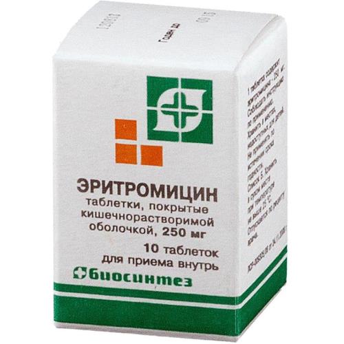 активное вещество: эритромицин (в пересчете на активное вещество) 100 мг или 250 мг,