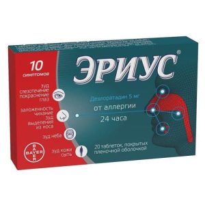 Эффективность и безопасность применения Эриуса в форме сиропа у детей в возрасте до 1 года не установлена. В большинстве случаев ринит у детей в возрасте до 2 лет имеет инфекционную природу. Исследований эффективности Эриуса при ринитах инфекционной этиологии не проводилось. Дифференциальный диагноз между аллергическим ринитом и ринитом иного происхождения у детей в возрасте до 2 лет представляет определенные трудности. При проведении дифференциального диагноза следует обратить внимание на наличие или отсутствие очагов инфекции или структурных аномалий верхних отделов дыхательных путей, провести тщательный сбор анамнеза, обследование, а также соответствующие лабораторные исследования и кожные тесты. В рекомендованной дозе Эриус не влияет на способность к вождению транспортных средств или управлению механизмами.