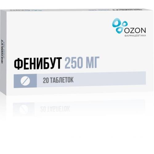 1 таблетка содержит активное вещество: аминофенилмасляной кислоты гидрохлорид (фенибут) – 250,0 мг.Лекарственная форма