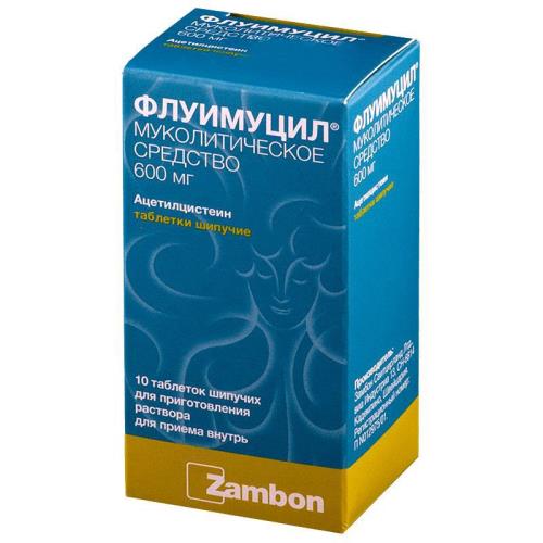 Флуимуцил 600 мг - это лекарственное средство в виде шипучих таблеток, которые содержат активное вещество ацетилцистеин. Препарат предназначен для лечения и профилактики заболеваний органов дыхательной системы, таких как бронхит, трахеит, муковисцидоз, пневмония. Ацетилцистеин способствует разжижению мокроты, улучшению ее отхождения и уменьшению кашля. Флуимуцил можно применять для удаления вязкого секрета из дыхательных путей при посттравматических и послеоперационных состояниях. Препарат легко растворяется в воде, что облегчает его применение. Флуимуцил 600 мг 10 шт. - это эффективное средство для лечения заболеваний дыхательной системы.