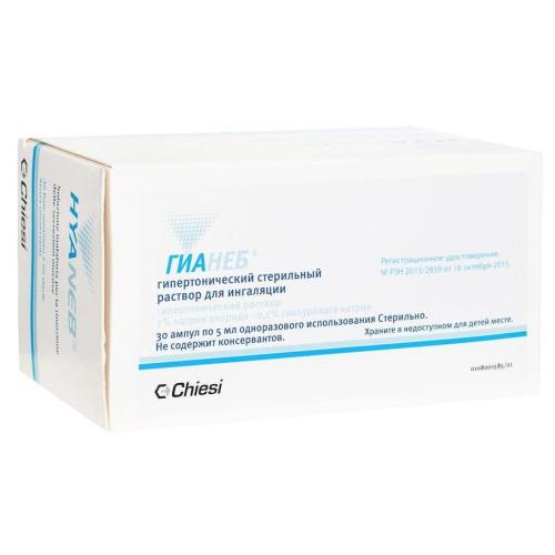 Гианеб - средство медицинского назначения для разжижения мокроты и облегчения ее выведения из легких. Гианеб - продукт инновационной технологии для терапии пациентов с бронхоэктазами и муковисцидозом. Ингаляции раствора, благодаря осмотическому механизму, ускоряют отхождение в дыхательных путях мокроты (вязкого секрета). Действие активных компонентов продукта обеспечивает его эффективность: -натрия хлорид: содержание натриевой соли соляной кислоты в высоких концентрациях притягивает влагу, способствуя регидратации бронхиального секрета; -гиалуроновая кислота: обладает способностью связывать в большом количестве молекулы H2O (воды) и удерживать их в межфибриллярном пространстве, является важным элементом защитных механизмов, стимулирует движение ресничек мерцательного эпителия бронхов, защищает легочную паренхиму от пагубного влияния ферментов. Переносимость Гианеба и приверженность пациентов к терапии значительно улучшается благодаря наличию в составе гиалуроновой кислоты. Применение при беременности и лактации Данные о безопасности и эффективности ингаляций Гианебом при беременности и во время грудного вскармливания отсутствуют. Применение в детском возрасте Применять препарат у детей следует только по назначению врача и под контролем взрослых. Стерильный раствор для ингаляции в ампулах для однократного использованияПоказания к применению