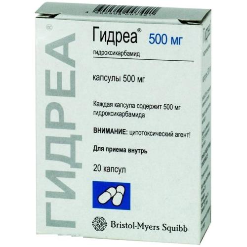 Активные вещества: гидроксикарбамид 500 мг.