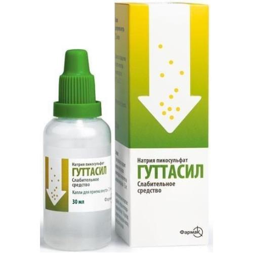 Сообщали о случаях головокружения и/или обморока, которые по времени совпадали с применением натрия пикосульфата. Анализ случаев показал, что эти состояния связаны с обмороком при дефекации (или обмороком, вызванным напряжением при дефекации) или связаны с вазовагальной реакцией на боль в животе, которая может быть обусловлена запором, и не обязательно связана с приемом препарата. Гуттасил эффективен в устранении запоров у онкологических больных, получающих большие дозы опиоидов.
