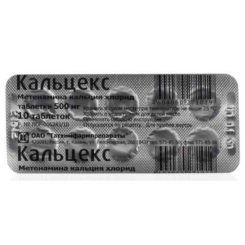 На одну таблетку: Метенамина кальция хлорида декагидрат - 500 мг.