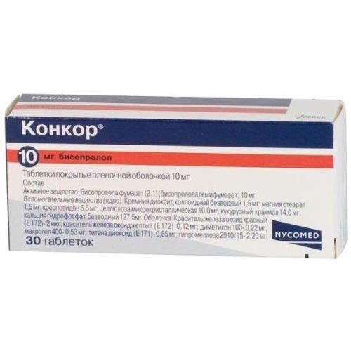 Действующее вещество: бисопролола фумарат - 10 мг.