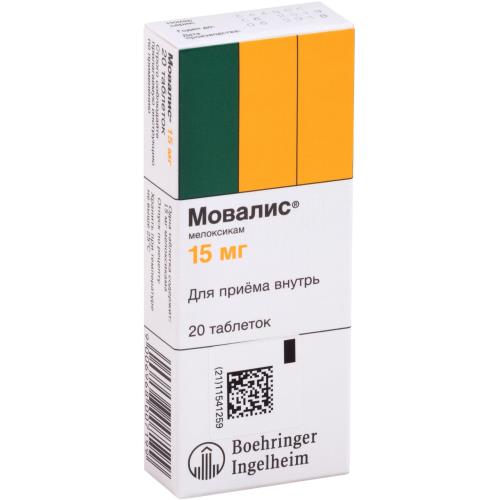 НПВС. Относится к классу оксикамов, является производным еноловой кислоты. Оказывает противовоспалительное, анальгезирующее и жаропонижающее действие.Механизм действия связан со снижением биосинтеза простагландинов в результате угнетения ферментативной активности ЦОГ. При этом Мовалис более активно влияет на ЦОГ-2, участвующую в синтезе простагландинов в очаге воспаления, что уменьшает риск развития побочного действия на верхние отделы ЖКТ и незначительно влияет на ЦОГ-1.