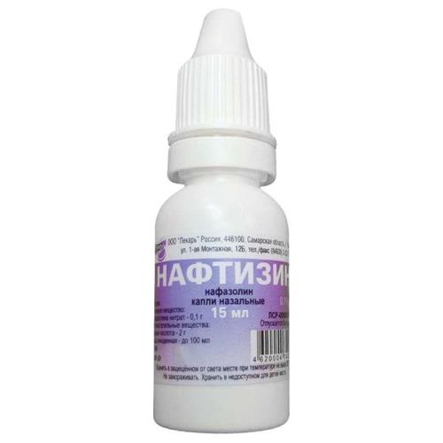 Нафазолина нитрат (Нафтизин) - 0,05 или 0,1 г Вспомогательные вещества: