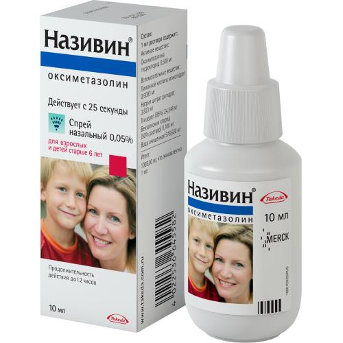 Препарат Називин® (оксиметазолин) оказывает сосудосуживающее действие. При местном нанесении на воспаленную слизистую оболочку полости носа уменьшает ее отечность и выделения из носа. Восстанавливает носовое дыхание. Устранение отека слизистой оболочки полости носа способствует восстановлению аэрации придаточных пазух полости носа, полости среднего уха, что предотвращает развитие бактериальных осложнений (гайморита, синусита, среднего отита). При местном интраназальном применении в терапевтических концентрациях не раздражает и не вызывает гиперемию слизистой оболочки полости носа. Препарат Називин® спрей назальный 0,05 % действует с 25 секунды. Продолжительность действия препарата до 12 часовФармакокинетика