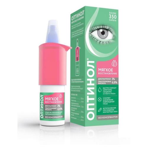 Мягкое восстановление способствует ускорению заживления повреждений и ран глаза после травм и хирургических операций. Средство увлажняющее офтальмологическое Оптинол® Мягкое восстановление эффективно и быстро снимает симптомы синдрома «сухого глаза» различной степени выраженности: устраняет ощущение инородного тела, жжения, рези в глазах, способствует снятию усталости при интенсивной зрительной нагрузке, устраняет дискомфорт при ношении всех типов контактных линз, поддерживает здоровое состояние глаз.