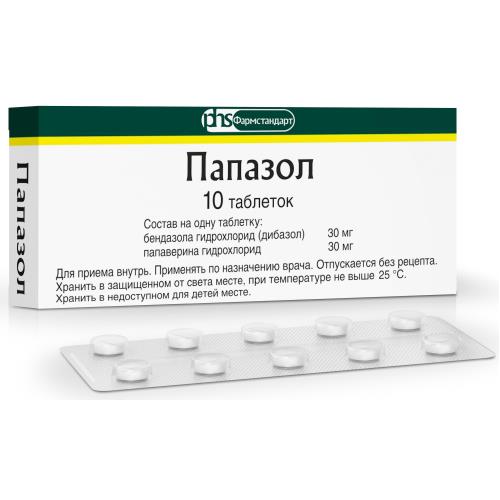 активные вещества: бендазола гидрохлорид (дибазол) – 30 мг, папаверин гидрохлорид – 30 мг;вспомогательные вещества: крахмал картофельный – 56 мг, тальк – 3 мг, кислота стеариновая – 1 мг, тальк, кислота стеариновая – 1 мг.