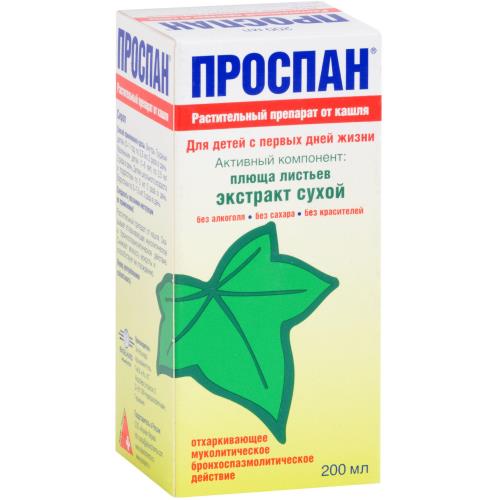 активный компонент: Плюща листьев экстракт сухой, экстрагент - этанол 30 % (5-7,5: 1) - 7,000 мг,