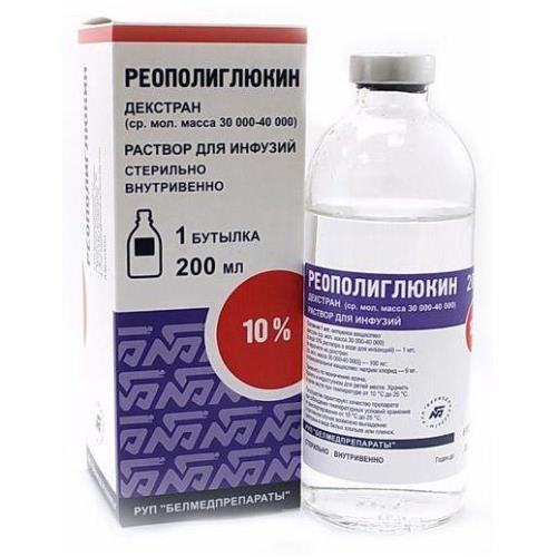Влияние на результаты лабораторных исследований Из-за высокого содержания декстрана в крови (в первые часы после инфузии) некоторыми методами определения глюкозы (например, Хагедорна-Йенсена, методы с использованием растворов серной и уксусной кислот) могут выявляться чрезмерные уровни глюкозы в крови. В таких случаях целесообразно пользоваться экспресс методами определения уровня глюкозы. Все методы, используемые в клинике, за исключением пробы Бетгер-Ниландера, предназначенные для определения глюкозы в моче после инфузии 10% раствора декстрана 40, применимы. Вскоре после начала инфузии удельный вес мочи может быть увеличен за счет увеличенной экскреции декстрана. Инфузия раствора декстрана может повлиять на результаты и других лабораторных исследований, таких как: определение белка, билирубина, жирных кислот, холестерина, фруктозы, скорости оседания эритроцитов. В связи с этим рекомендуется брать пробы крови для этих исследований до введения препарата. Введение декстранов не препятствует определению группы крови и проведению перекрестной пробы стандартными методами (рекомендуется отмыть эритроциты 0,9% раствором натрия хлорида до исследования). Присутствие декстрана в крови может влиять на результаты ферментных методов, основанных на папаине. Как правило, Реополиглюкин вызывает увеличение диуреза (если наблюдается снижение диуреза с выделением вязкой сиропообразной мочи, то это может указывать на обезвоживание). В случае возникновения олигурии необходимо ввести солевые растворы и фуросемид. Непосредственно перед применением лекарственного средства, за исключением ургентных случаев, проводится кожная проба. Для этого после обработки антисептиком места укола в средней части внутренней поверхности предплечья внутрикожно вводится 0,05 мл лекарственного средства с образованием «лимонной корочки». Наличие в месте инъекции покраснения, образование папулы или появление симптомов общей реакции организма в виде тошноты, головокружения и других проявлений через 10-15 минут после инъекции свидетельствуют о гиперчувствительности больного к лекарственному средству (группа риска). При применении лекарственного средства обязательнр проведение биопробы: после медленного введения первых 5 капель лекарственного средства прекращают переливание на 3 минуты, затем вводят еще 30 капель и снова прекращают вливание на 3 минуты. При отсутствии реакции продолжается введение лекарственного средства. Результаты биопробы обязательно регистрируются в истории болезни. Применять только под контролем врача. Перед введением необходимо провести визуальный осмотр бутылки с предназначенным для переливания лекарственным средством. Раствор должен быть прозрачным, не содержать взвешенных частиц или осадка. Лекарственное средство считается пригодным для использования при наличии этикетки и сохранении герметичности упаковки. Содержимое флакона может быть использовано только для одного пациента. После нарушения герметичности флакона неиспользованную часть его содержимого следует утилизировать согласно действующим требованиям. Применять с осторожностью больным с нарушенной выделительной функцией почек. С осторожностью применяют больным с гипертонической болезнью в связи с возможностью повышения артериального давления и