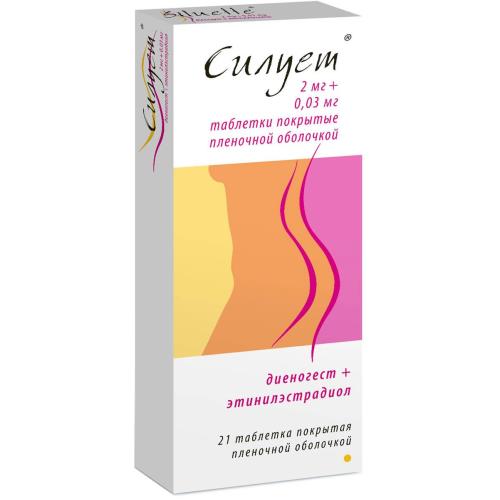 Силует - пероральное комбинированное средство с антиандрогенным эффектом, содержит этинилэстрадиол (ЭЭ) в качестве эстрогена и диеногест (ДНГ) в качестве прогестагена. Контрацептивный эффект препарата Силует обусловлен различными факторами, наиболее важными среди них являются - ингибирование овуляции, повышение вязкости цервикальной слизи, изменение перистальтики маточных труб и структуры эндометрия. Антиандрогенный эффект комбинации ЭЭ и ДНГ основывается на снижении концентрации андрогенов в плазме.