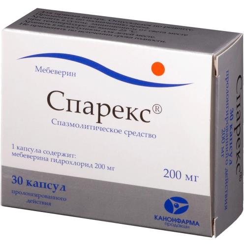 активное вещество: мебеверина гидрохлорид 200 мг,