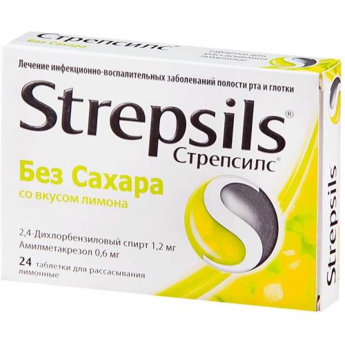 Таблетки для рассасывания медово-лимонные: желтые плоскоцилиндрические таблетки с изображением буквы S с 2-х сторон таблетки. Допускается белый налет, неравномерность окрашивания, наличие пузырьков воздуха в карамельной массе и незначительная неровность краев.