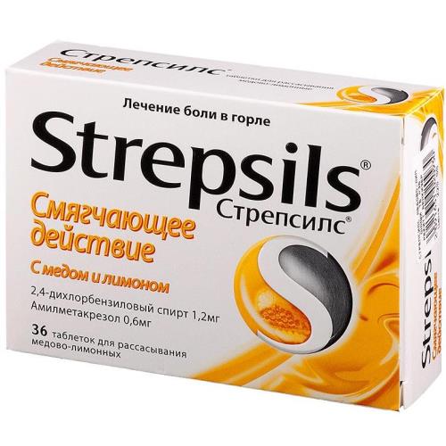 Таблетки для рассасывания медово-лимонные: желтые плоскоцилиндрические таблетки с изображением буквы S с 2-х сторон таблетки. Допускается белый налет, неравномерность окрашивания, наличие пузырьков воздуха в карамельной массе и незначительная неровность краев.