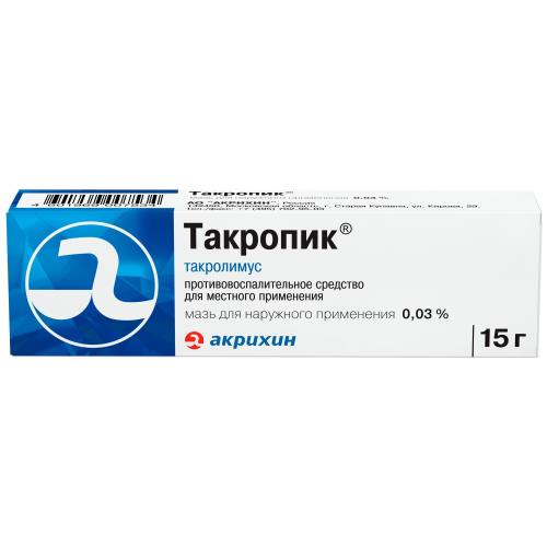 Такролимус не метаболизируется в коже, что исключает риск лекарственных взаимодействий в коже, которые могут повлиять на его метаболизм. Так как системная абсорбция такролимуса при использовании в форме мази минимальна, взаимодействие с ингибиторами изофермента CYP3A4 (в том числе эритромицин, итраконазол, кетоконазол, дилтиазем) при одновременном применении с препаратом Такропик® маловероятно, однако не может быть полностью исключено у пациентов с обширными участками поражения и/или эритродермией. Влияние препарата Такропик® на эффективность вакцинации не изучалось. Однако, из-за потенциального риска снижения эффективности, вакцинацию необходимо провести до начала применения мази или спустя 14 дней после последнего использования препарата Такропик®. В случае применения живой аттенуированной вакцины этот период должен быть увеличен до 28 дней, в противном случае следует рассмотреть возможность использования альтернативных вакцин. Одновременное применение такролимуса с конъюгированной вакциной против Neisseria meningitidis серотипа С у детей от 2 до 11 лет не оказывает влияния на первичный ответ на вакцинацию, формирование иммунной памяти, а также гуморальный и клеточный иммунный ответ. Возможность совместного применения препарата Такропик® с другими наружными препаратами, системными глюкокортикостероидами и иммунодепрессантами не изучалосьСпособ применения и дозы