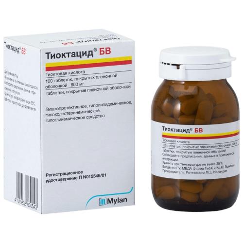 Препарат принимают внутрь. Строго натощак за 20-30 минут до приема пищи, не разжевывая, запивая водой. Рекомендуемая доза 1 таблетка (600 мг) 1 раз в день. В тяжелых случаях для большей эффективности рекомендуется назначение ступенчатой терапии: начало лечения внутривенное введение препарата Тиоктацид 600 Т, раствор для внутривенного введения (2 4 недели) с последующим переводом пациента на прием препарата Тиоктацид БВ.